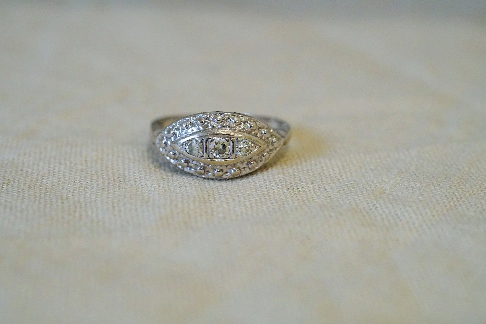 Vintage 14k Gold Navette Diamond Ring – Old Cut Diamond Art Deco Style
